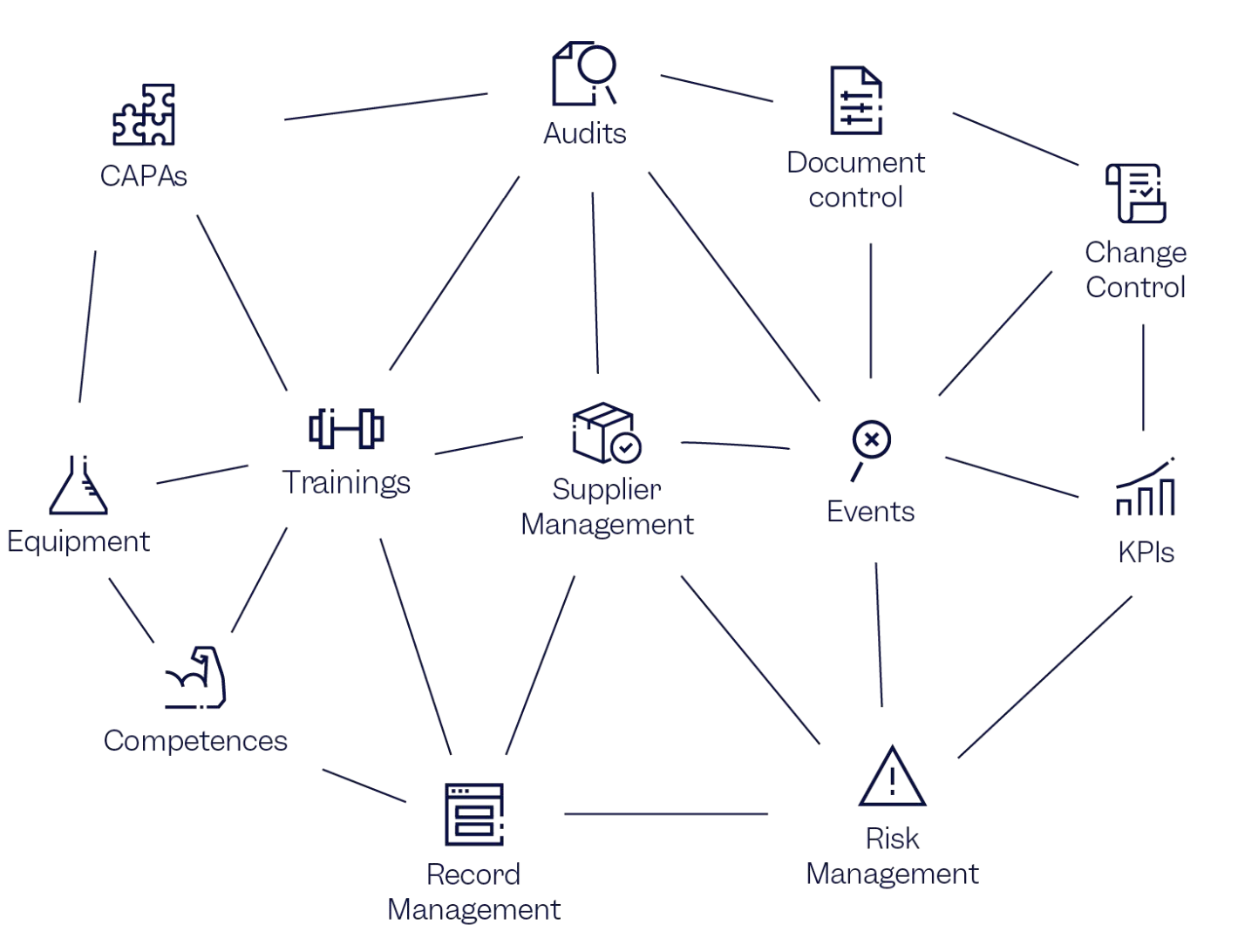ISO 13485 ve FDA (21 CSR 820) kalite yönetim sistemleri için yazılım;
